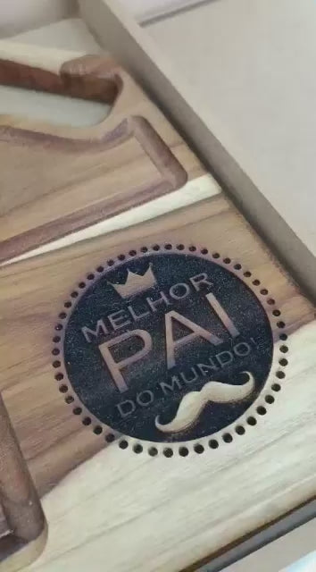 Surpreenda colaboradores, clientes, amigos ou familiares com o Kit Churrasco Premium Personalizado. Completo e elegante, vem com tábua de madeira nobre Teca, garra de urso, tridente e garfo de churrasco em alumínio super resistente – tudo acomodado em uma caixa personalizada que transforma o presente em uma lembrança memorável.