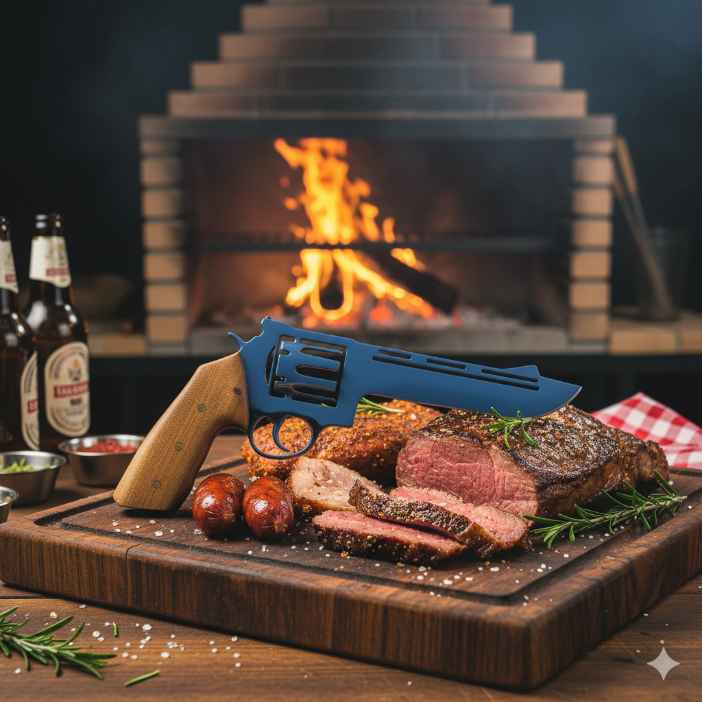 Transforme qualquer churrasco em um verdadeiro ritual com a Faca Revolver, uma peça artesanal, única e de altíssima qualidade.
