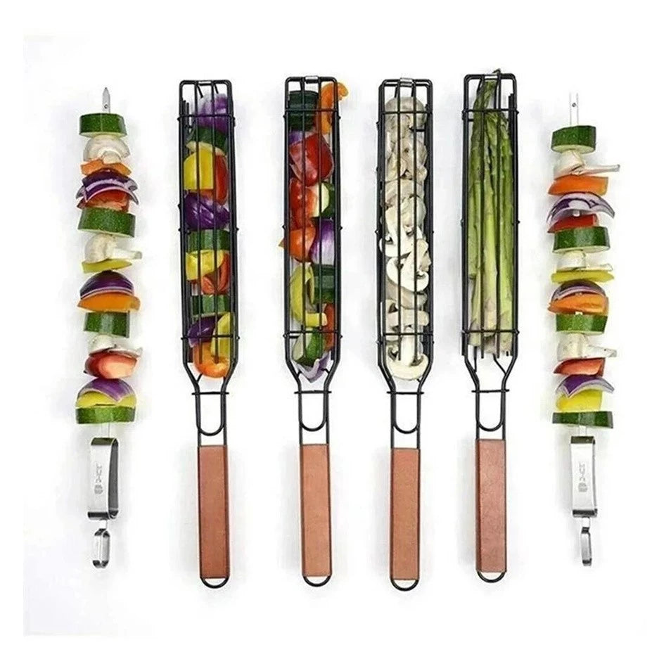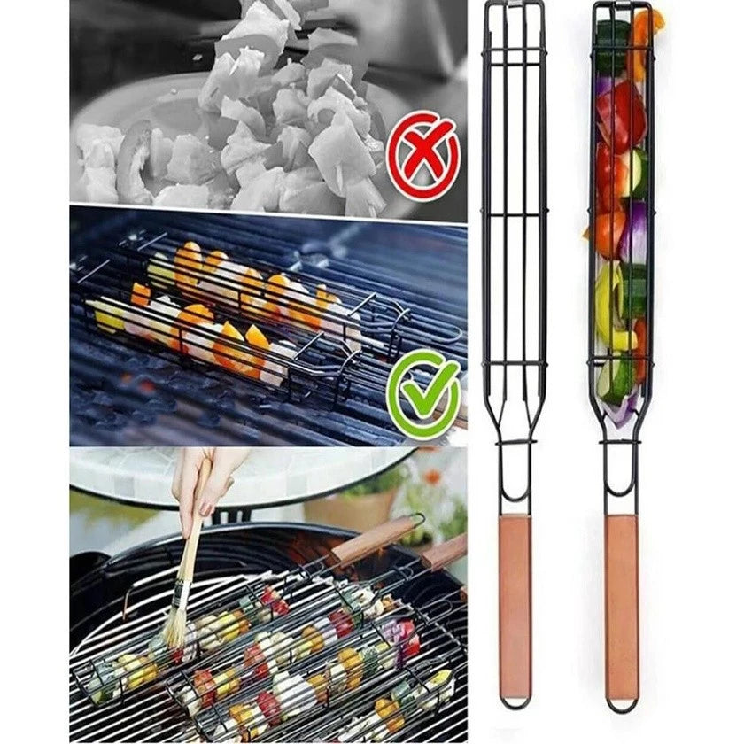 Transforme seu churrasco com a Cesta Grelha para Legumes e Espetos Antiaderente! Ideal para preparar cebolas, pimentões, camarões, frutas e até pequenas porções de carne sem precisar de espetos individuais. Basta colocar os alimentos, travar a tampa e girar – prático, rápido e sem bagunça.