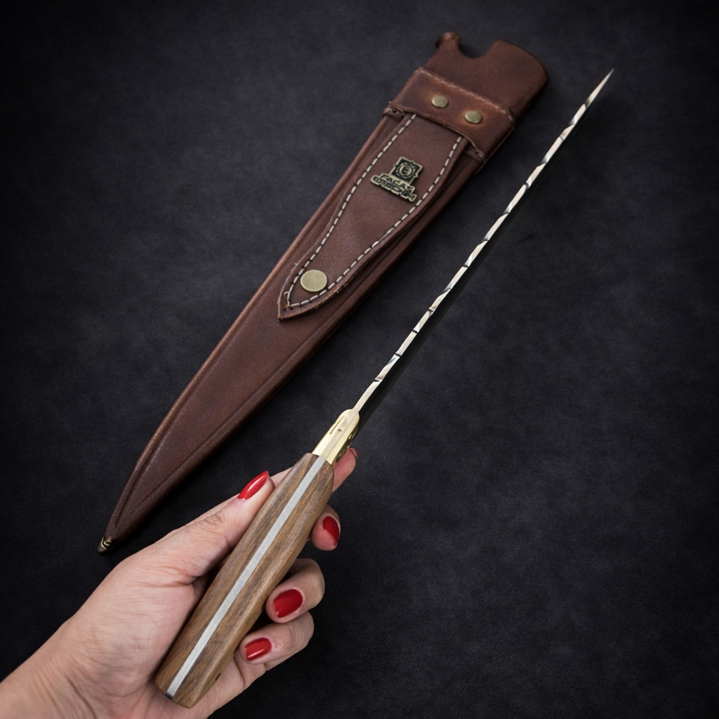 A Faca Javalizeira Premium 12” é uma peça robusta, pensada para quem leva o churrasco e o corte a sério. Forjada em aço inox, oferece ótima retenção de fio, alto poder de corte e durabilidade superior, sendo ideal tanto para churrasco quanto para uso geral na cozinha ou área gourmet.